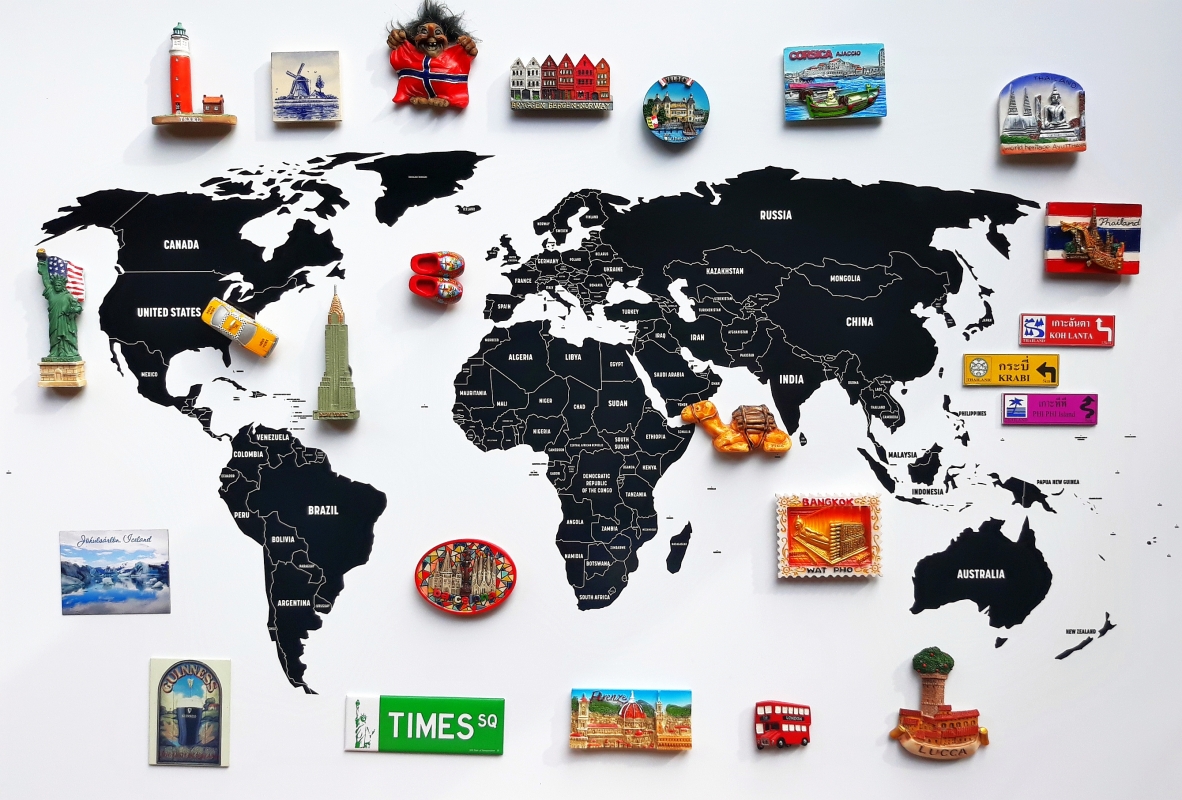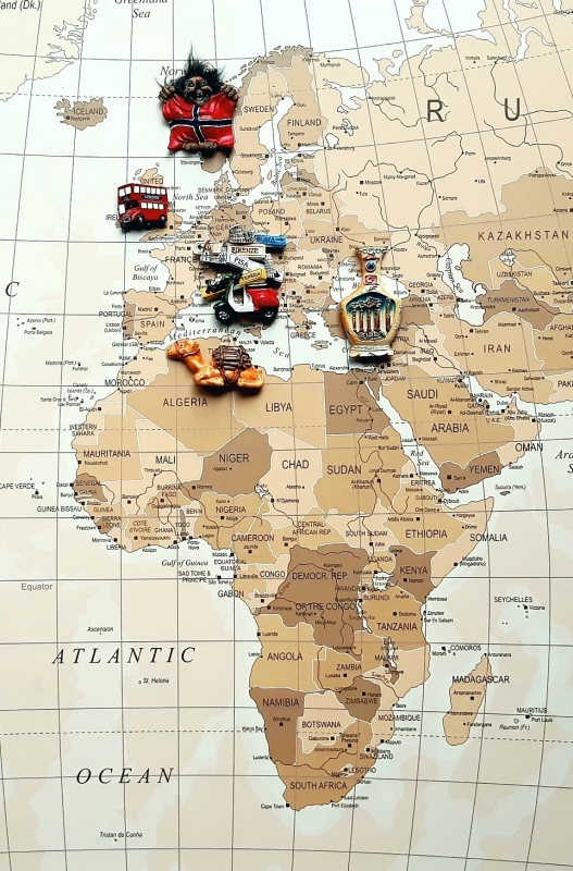 Magnetické mapy sveta, svetadielov, štátov i jednotlivých regiónov alebo priamo miest si môžete nechať zhotoviť v rôznych formátoch a na rôznych materiáloch od samolepky až po kovový podklad.