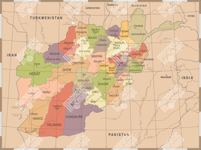 Magnetická mapa Afganistanu, vintage, farebná