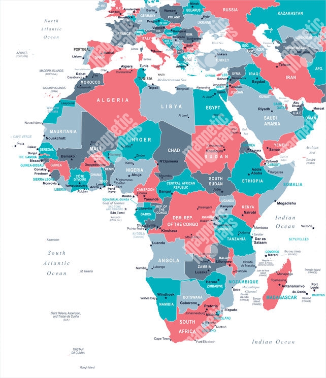 Magnetická mapa Afriky, ilustrovaná, farebná