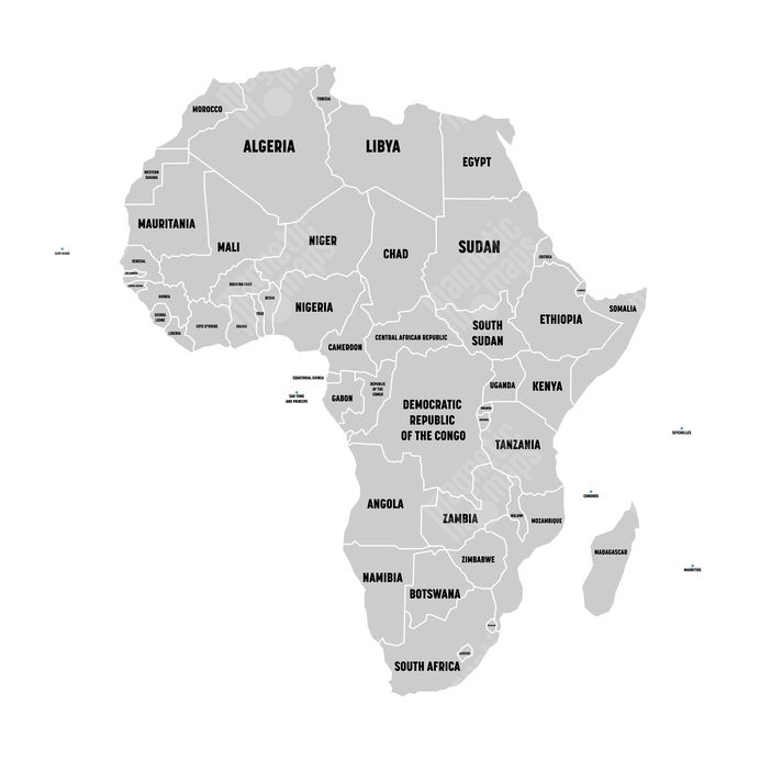 Magnetická mapa Afriky, ilustrovaná, šedá