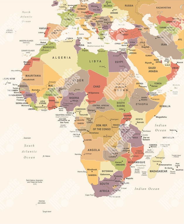 Magnetická mapa Afriky, vintage, farebná