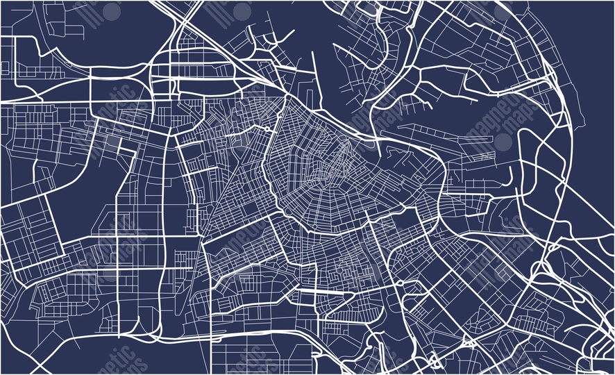 Magnetická mapa Amsterdamu, ilustrovaná, modrá