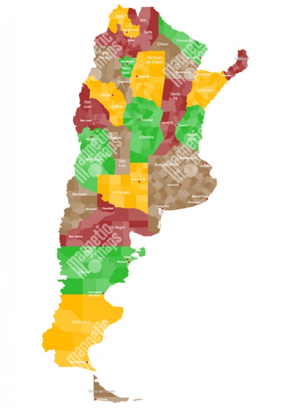 Magnetická mapa Argentíny, administratívna, farebná
