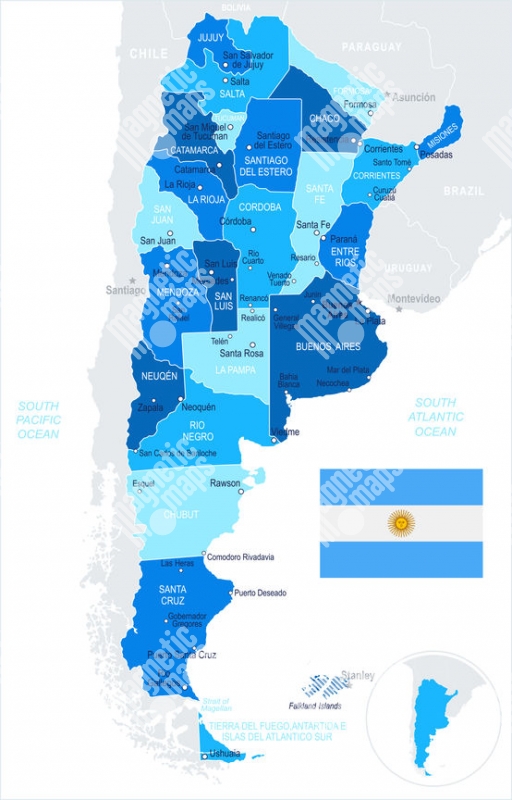 Magnetická mapa Argentíny, ilustrovaná, modrá