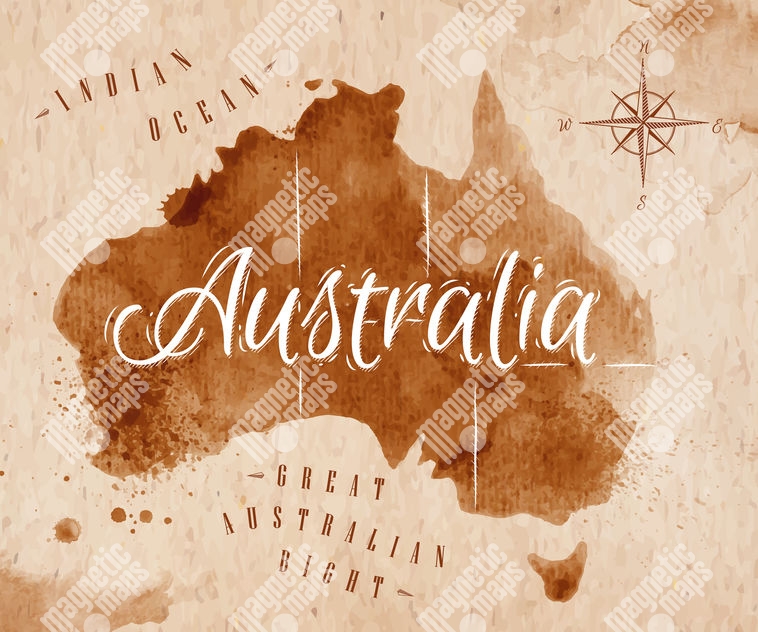 Magnetická mapa Austrálie, watercolor, hnedá