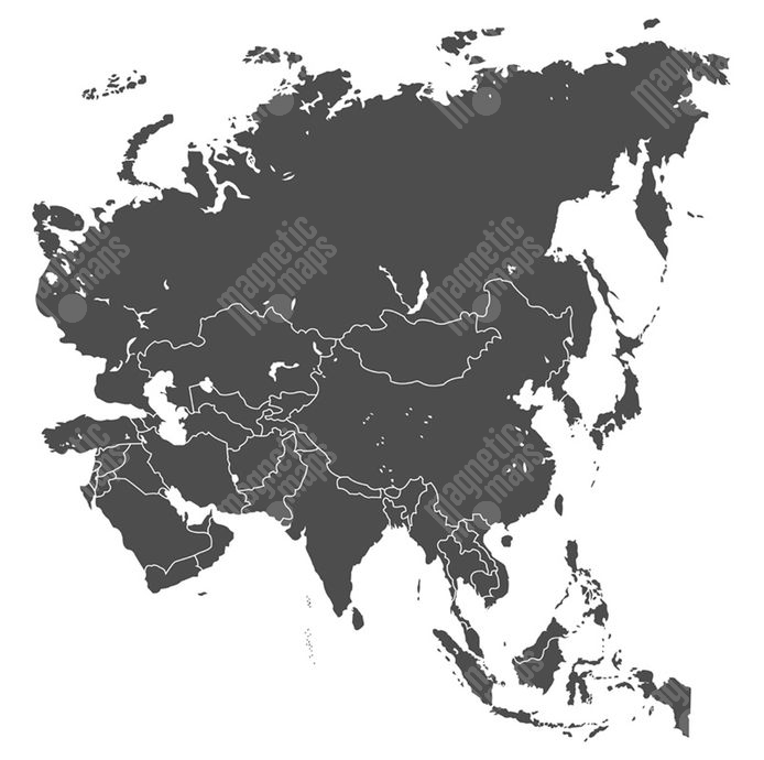 Magnetická mapa Ázie, ilustrovaná, šedá