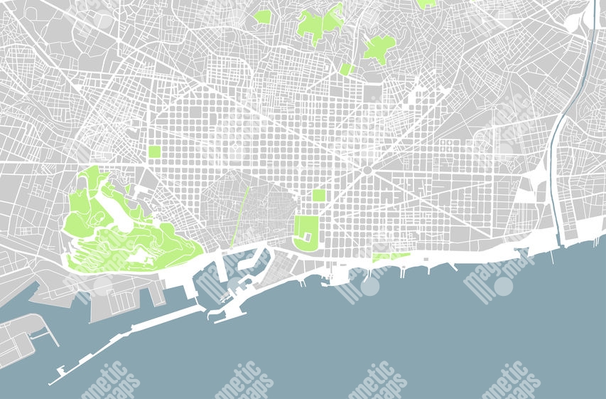 Magnetická mapa Barcelony, ilustrovaná, bez popiskov