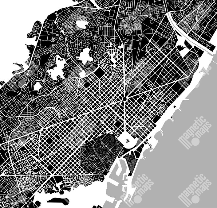 Magnetická mapa Barcelony, ilustrovaná, čierna