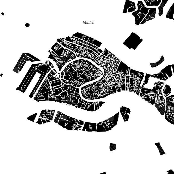 Magnetická mapa Benátok, ilustrovaná, čierno-biela