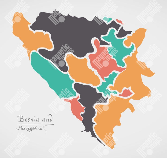 Magnetická mapa Bosny a Hercegoviny, ilustrovaná, farebná