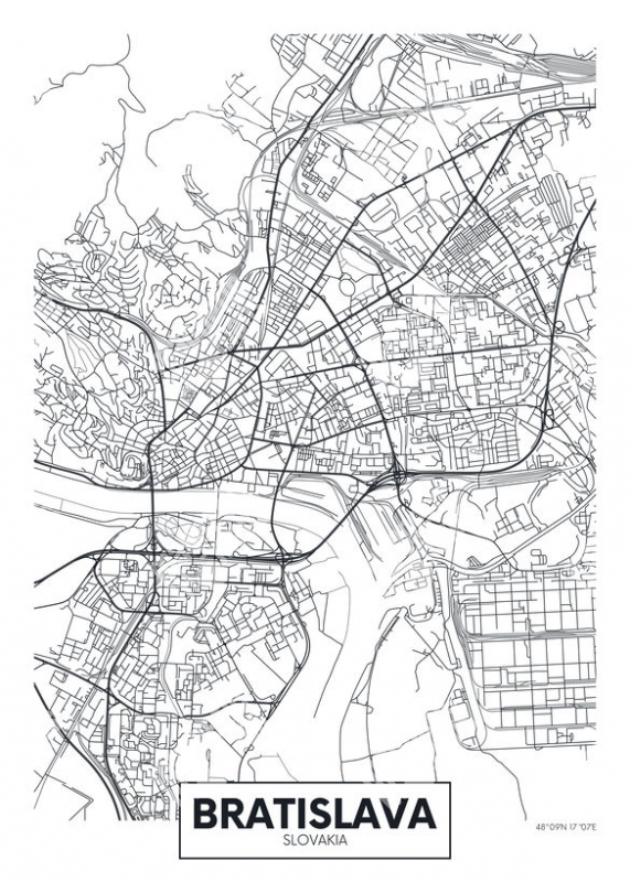Magnetická mapa Bratislavy, ilustrovaná, čierno-biela