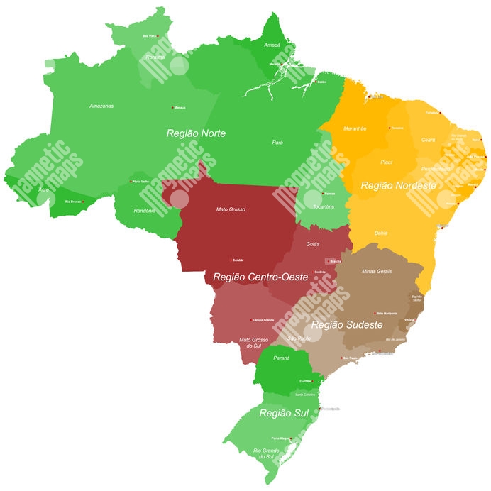 Magnetická mapa Brazílie, administratívna, farebná