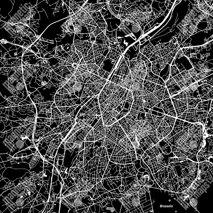 Magnetická mapa Bruselu, ilustrovaná, čierno-biela
