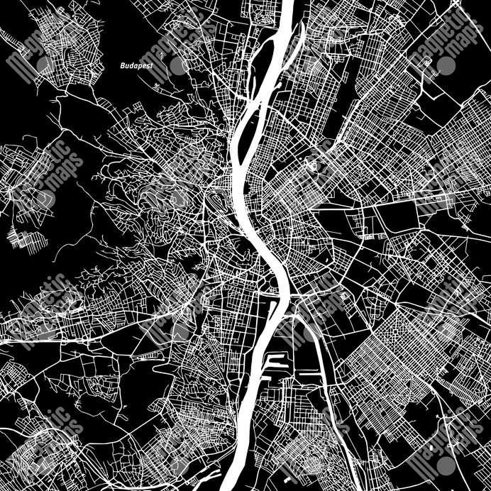 Magnetická mapa Budapešti, ilustrovaná, čierno-biela