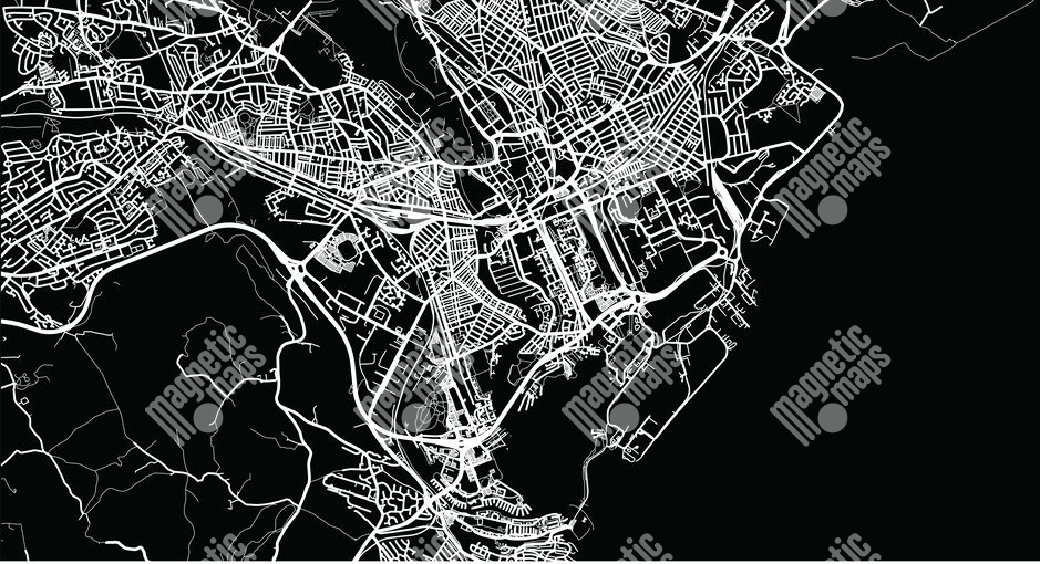 Magnetická mapa Cardiffe (Wales), ilustrovaná, čierna