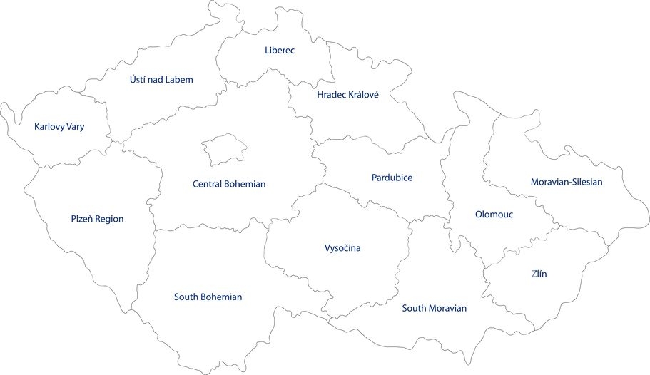 Magnetická mapa Česka, administratívna, biela