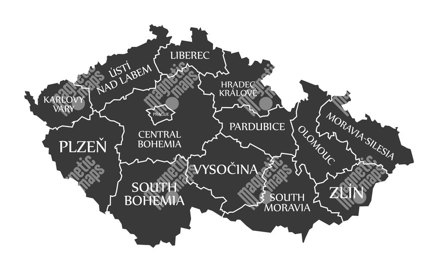 Magnetická mapa Česka, ilustrovaná, čierna