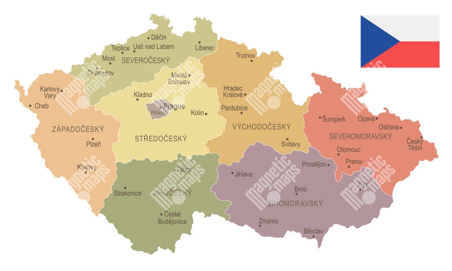 Magnetická mapa Česka, ilustrovaná, farebná