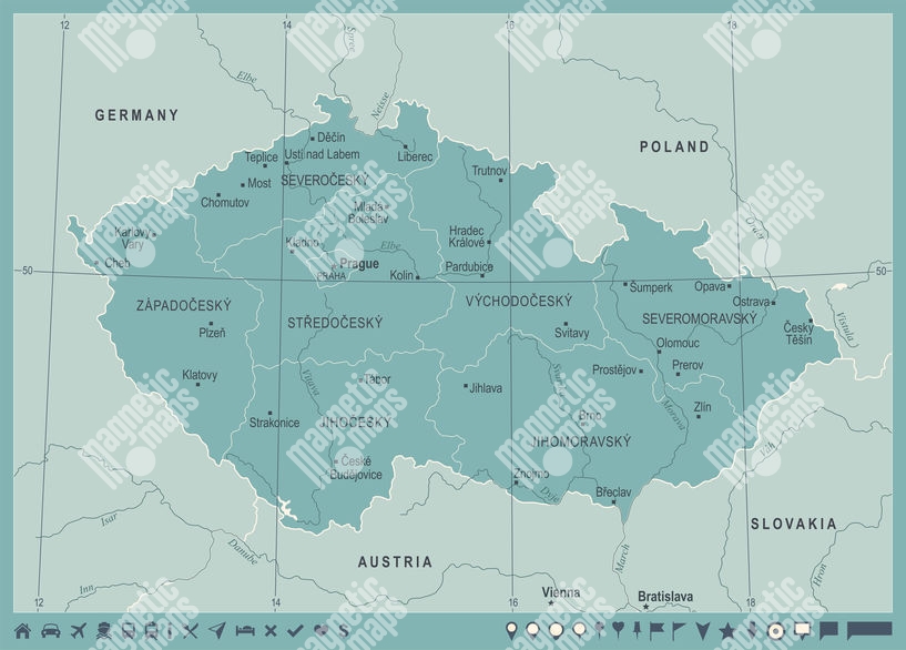 Magnetická mapa Česka, vintage, modrá