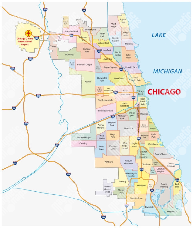 Magnetická mapa Chicaga, administratívna, farebná