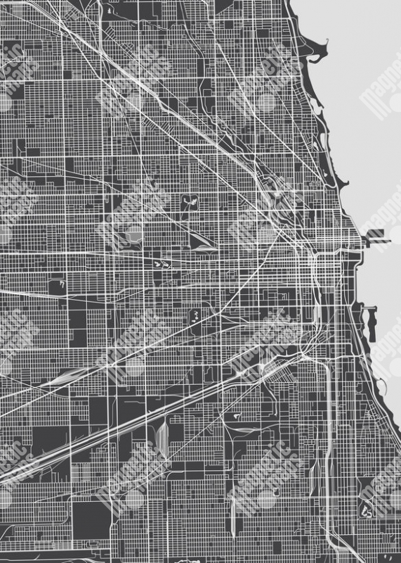 Magnetická mapa Chicaga, ilustrovaná, čierno-biela