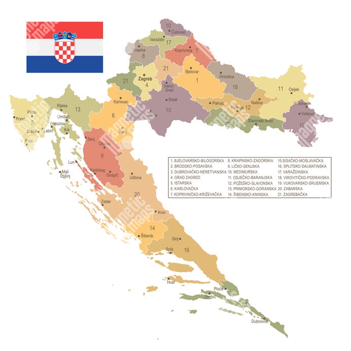 Magnetická mapa Chorvátska, detailná, farebná