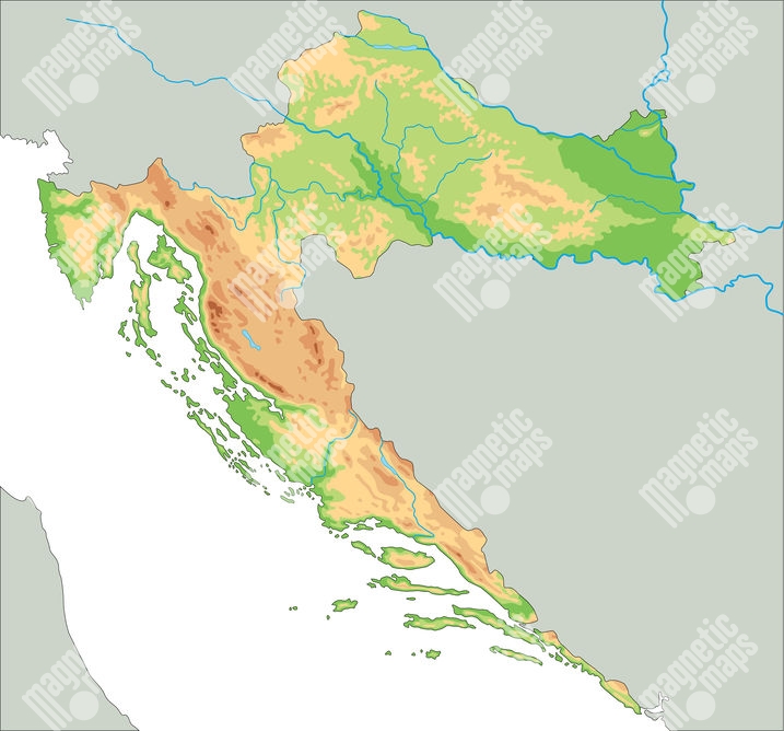 Magnetická mapa Chorvátska, geografická, farebná