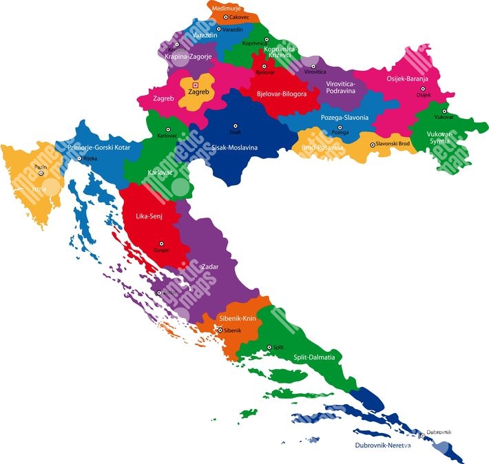 Magnetická mapa Chorvátska, ilustrovaná, farebná