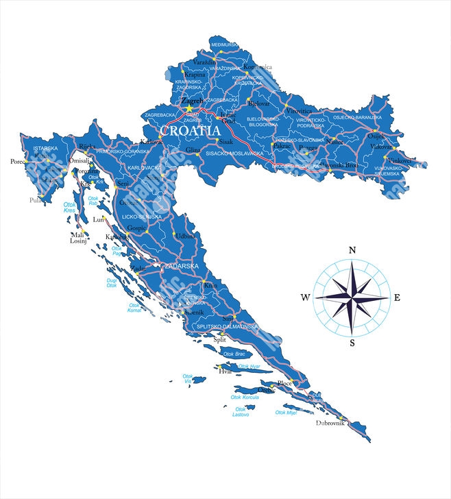 Magnetická mapa Chorvátska, ilustrovaná, modrá
