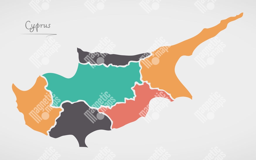 Magnetická mapa Cypru, ilustrovaná, farebná