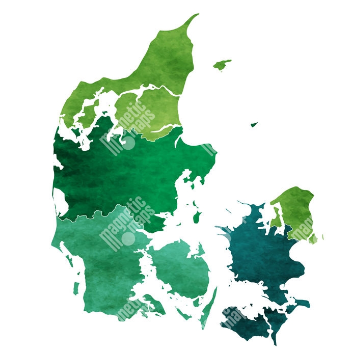 Magnetická mapa Dánska, ilustrovaná, zeleno-modrá