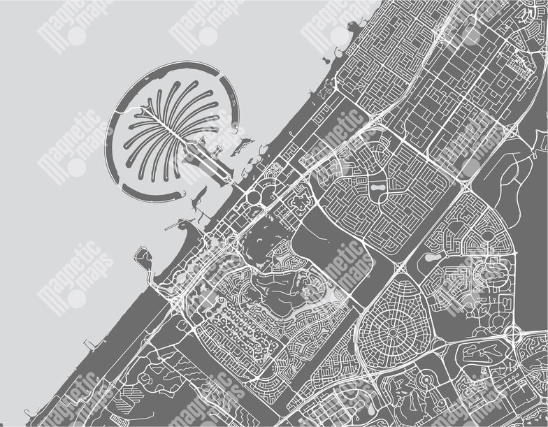 Magnetická mapa Dubaje, ilustrovaná, bielo-šedá