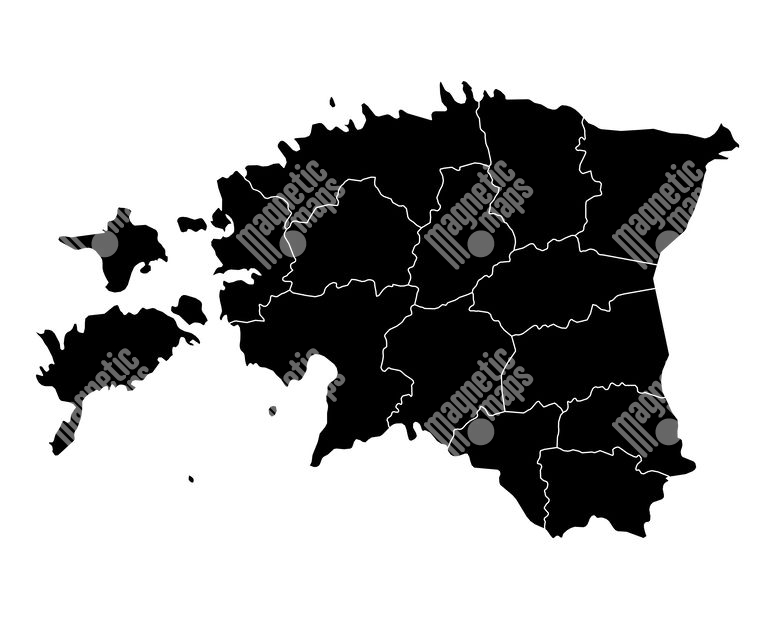 Magnetická mapa Estónska, ilustrovaná, čierna