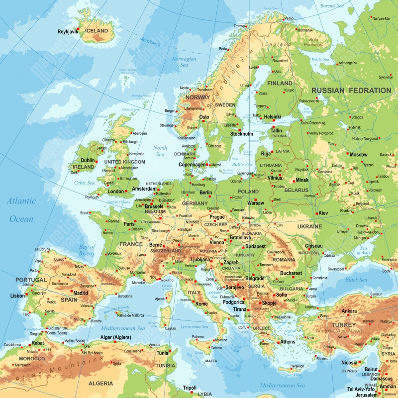 Magnetická mapa Európy, geografická, farebná