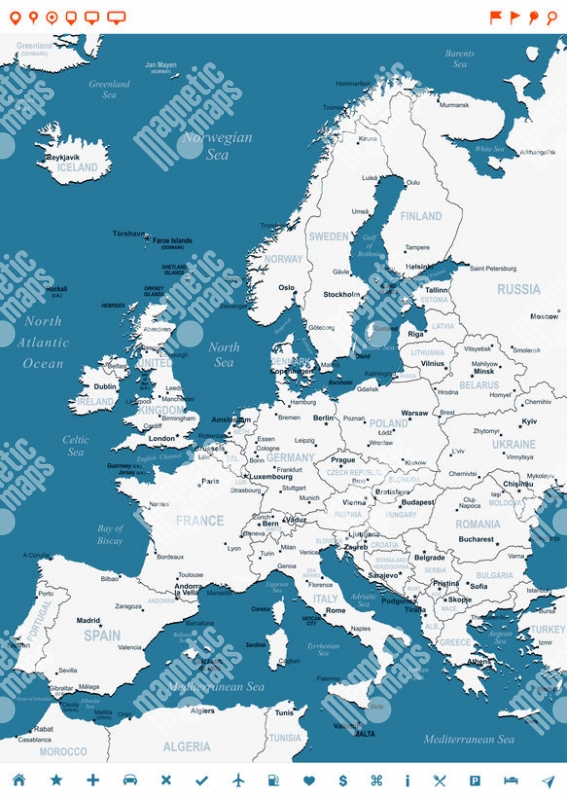 Magnetická mapa Európy, ilustrovaná, bielo-modrá