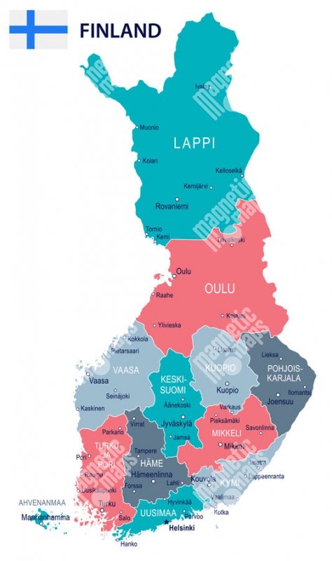 Magnetická mapa Fínska, ilustrovaná, farebná