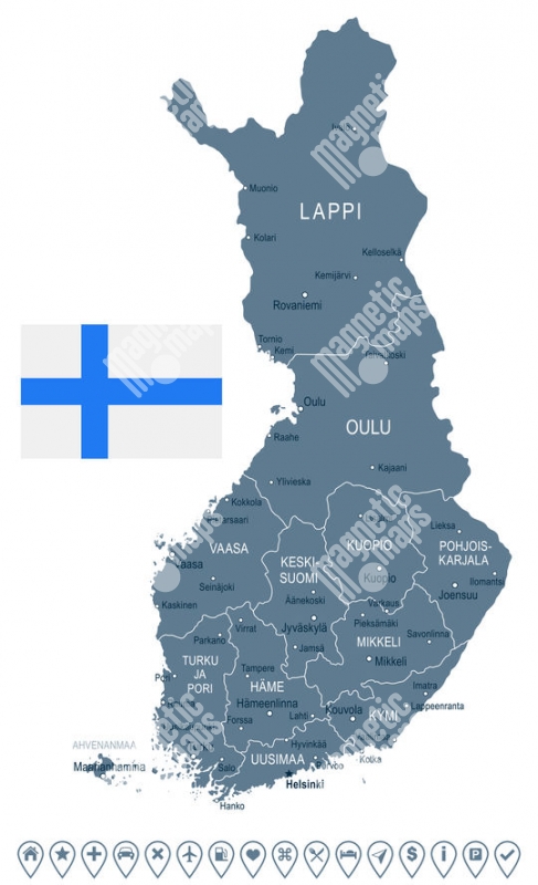 Magnetická mapa Fínska, ilustrovaná, šedá