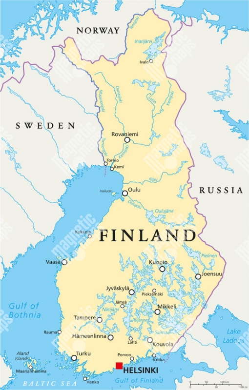 Magnetická mapa Fínska, politická, béžová