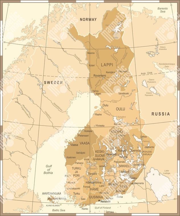 Magnetická mapa Fínska, vintage, hnedá