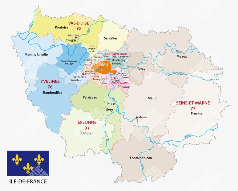 Magnetická mapa Francúzska, administratívna, farebná