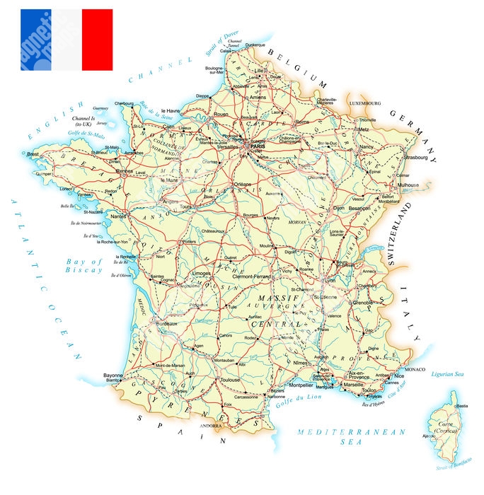 Magnetická mapa Francúzska, detailná, farebná