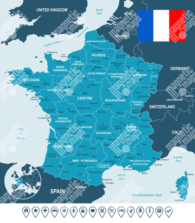 Magnetická mapa Francúzska, ilustrovaná, bielo-modrá
