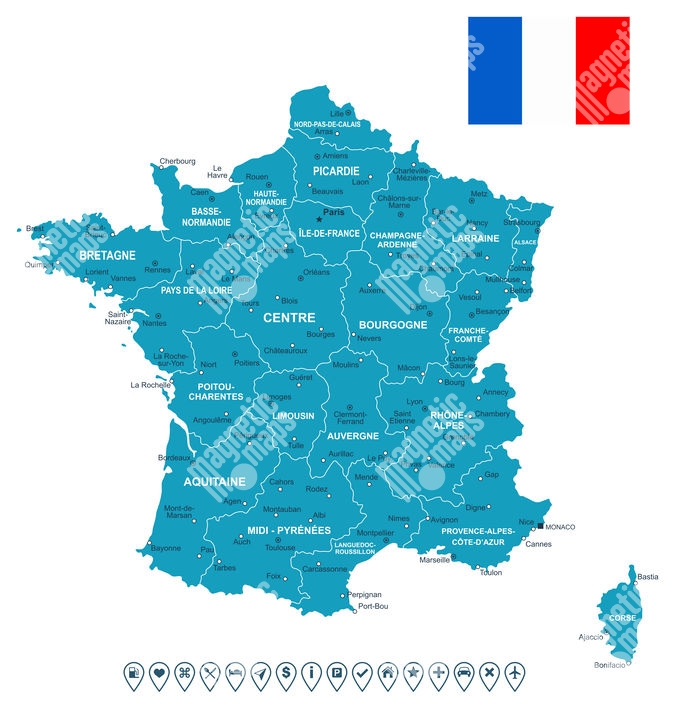 Magnetická mapa Francúzska, ilustrovaná, modrá