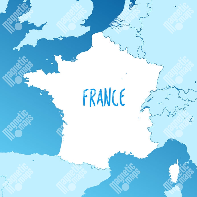 Magnetická mapa Francúzska, ilustrovaná, modrá