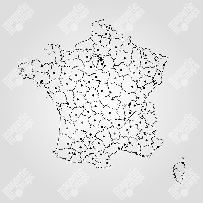 Magnetická mapa Francúzska, ilustrovaná, šedá