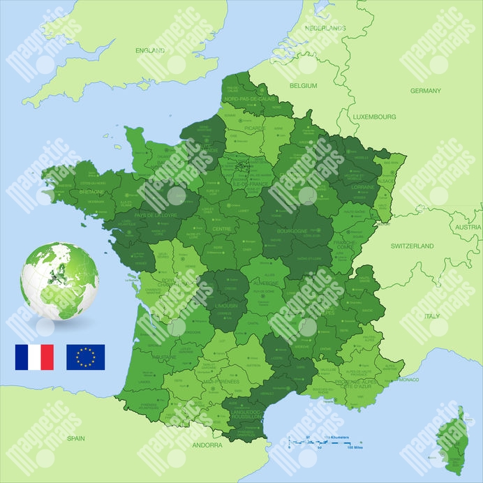 Magnetická mapa Francúzska, ilustrovaná, zelená