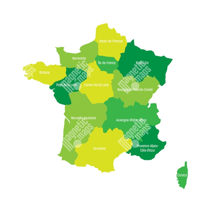 Magnetická mapa Francúzska, ilustrovaná, zeleno-žltá