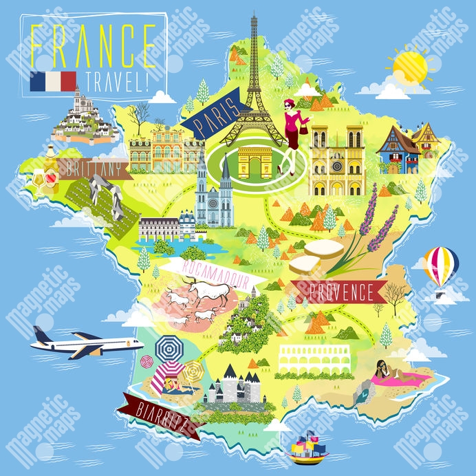 Magnetická mapa Francúzska, kreslená, farebná