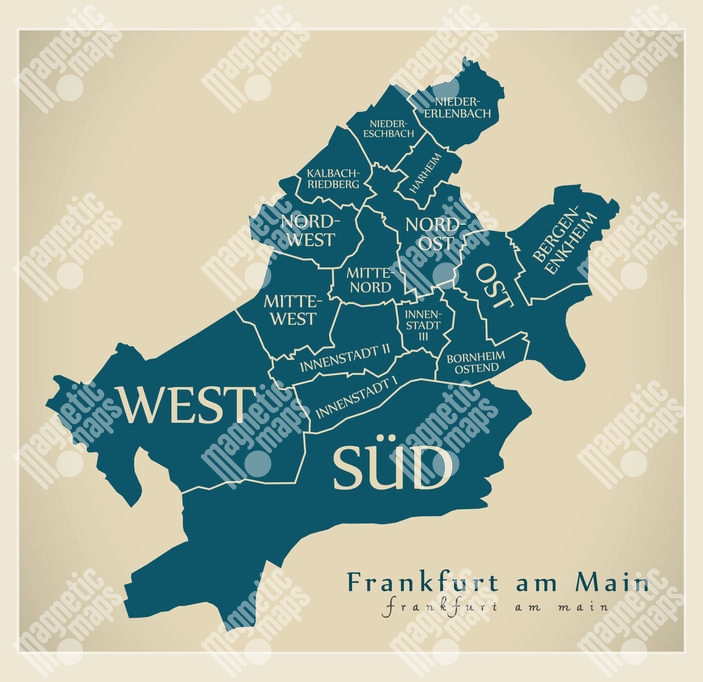 Magnetická mapa Frankfurte, ilustrovaná, modrá