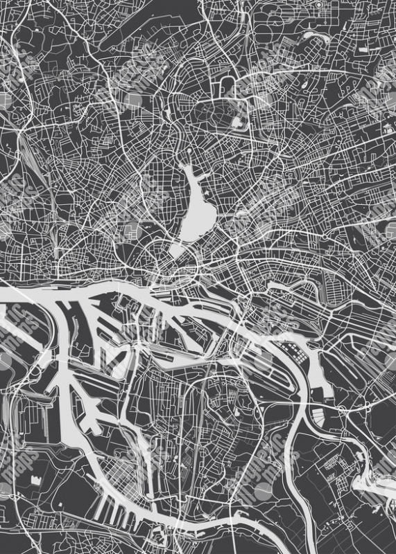 Magnetická mapa Hamburgu, ilustrovaná, čierna